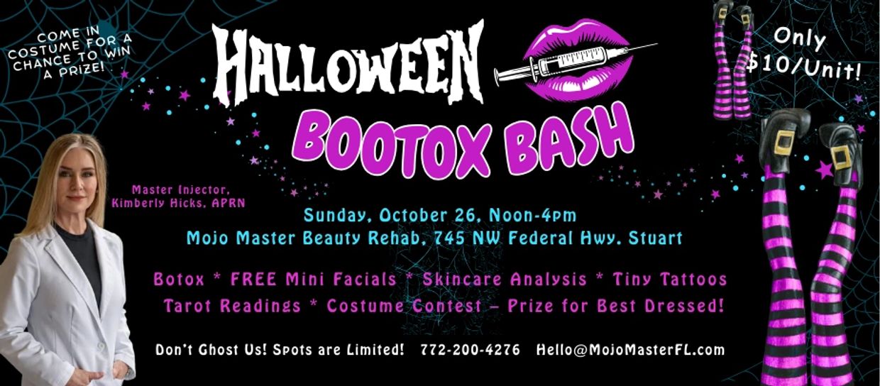 Everyone’s invited to the Bootox Bash — you don’t need to be getting a service to join the fun! 🎃 Bring a friend! Come hang out, enjoy facials, tarot, potions, treats, and laughs with the Mojo tribe. I