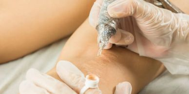 Inkless Scar & Stretch Mark Therapy, also sometimes referred to as naked tattooing, microneedling, skin needling, or Collagen Induction Therapy (CIT), relies on your body's natural resources to heal and improve unsightly, textured scars. By making tiny punctures to the damaged skin, and infusing healing products like hyaluronic acid to improve cell turnover, we will reignite your natural healing powers resulting in a rejuvenation of Fibroblast cells, Collagen, and Elastin. This will also break up the scar tissue, increase blood flow and transforming the area to smoother, healthier looking skin.